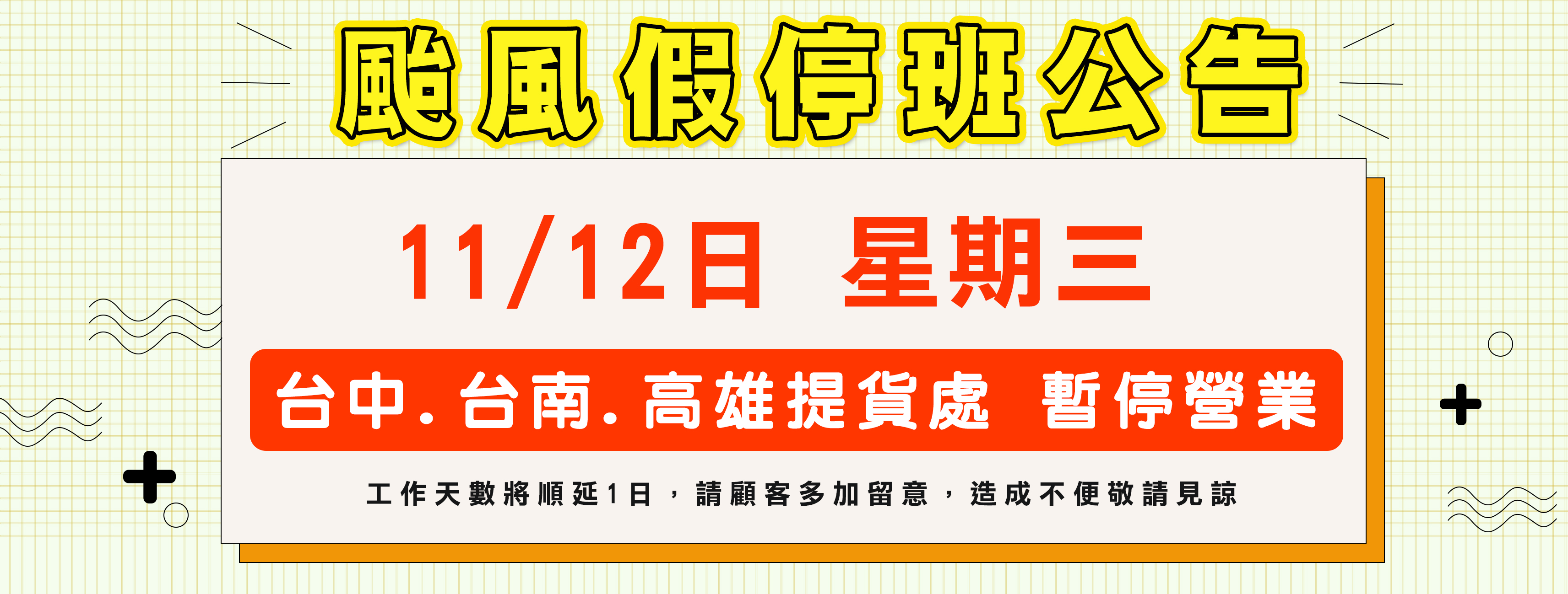 【台中、台南、高雄提貨處】11/12 (星期三)停班,暫停營業