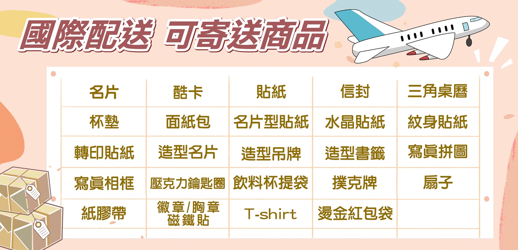 多款商品皆能海外出貨,燙金紅包袋🧧、貼紙✨、名片📇…全部寄得到~