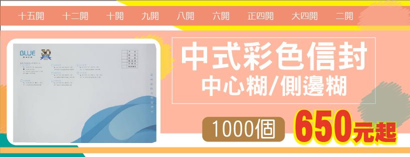 :: 01. 彩色中式信封(堅持微利原則,規模經濟,主動降價回饋)
