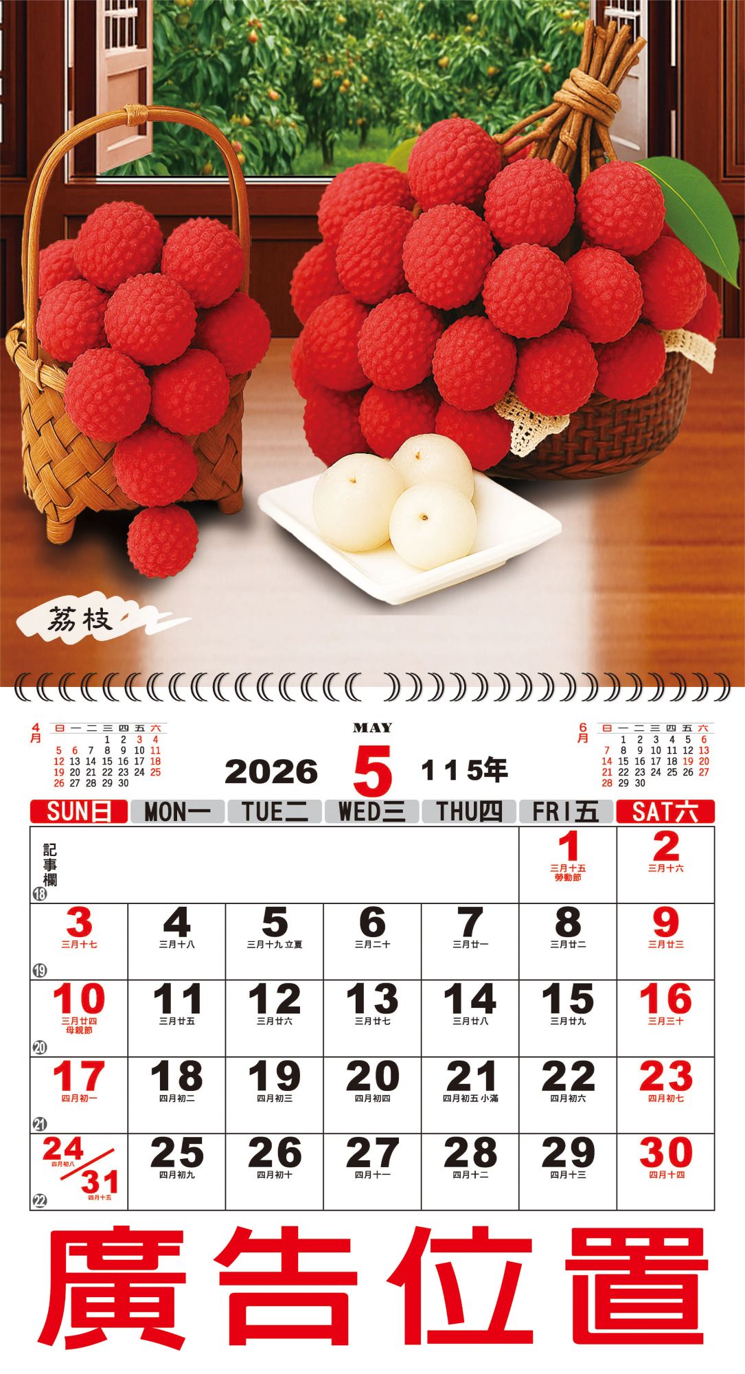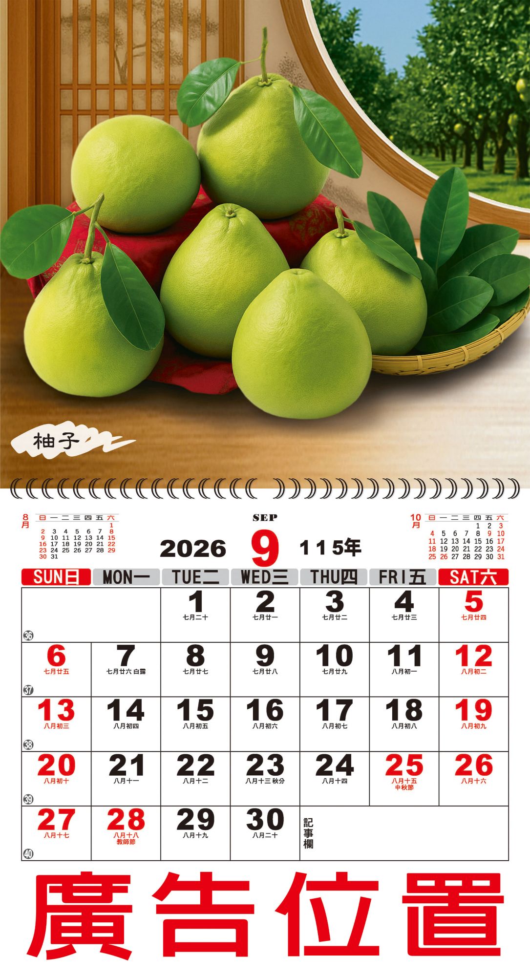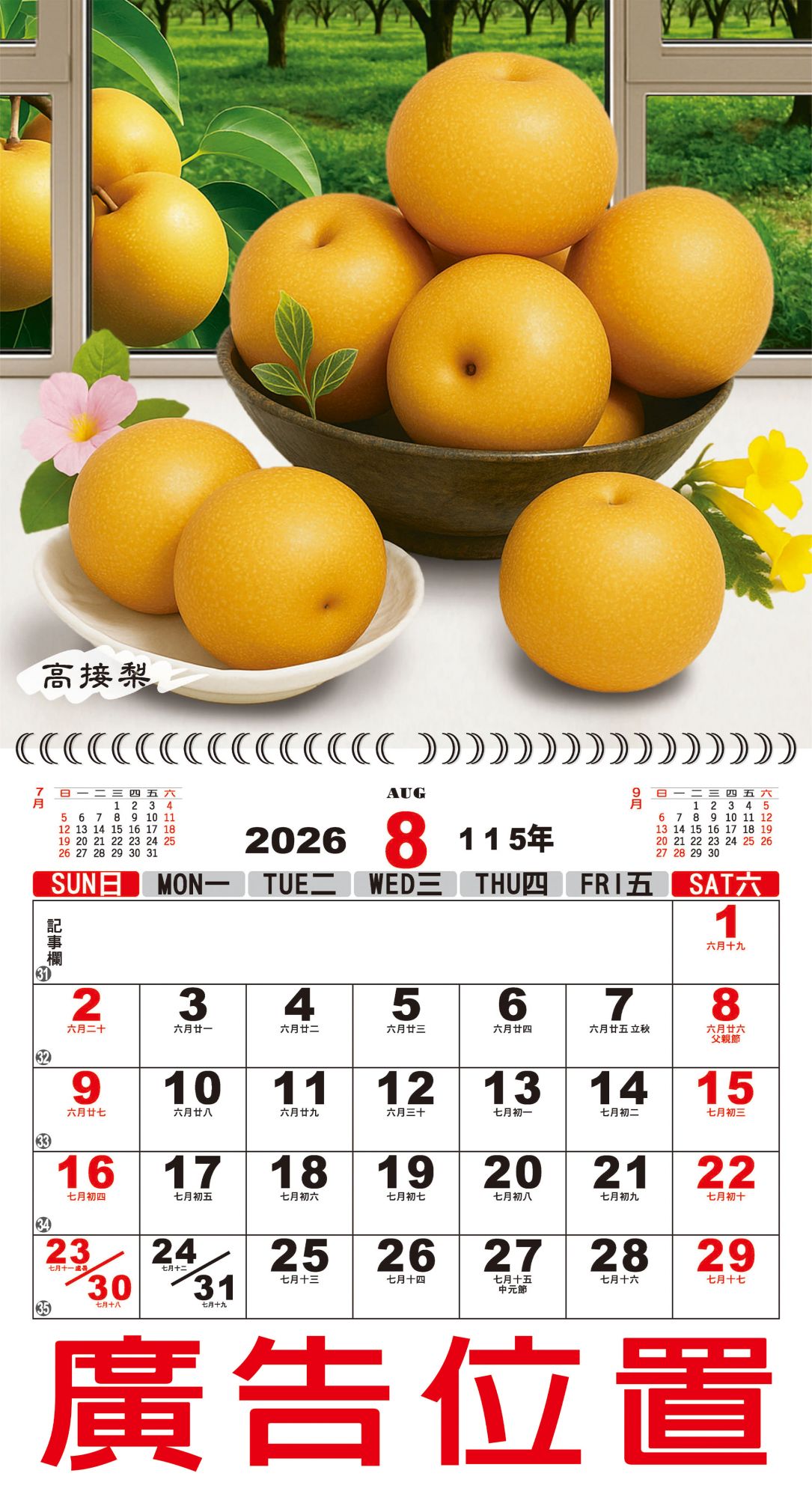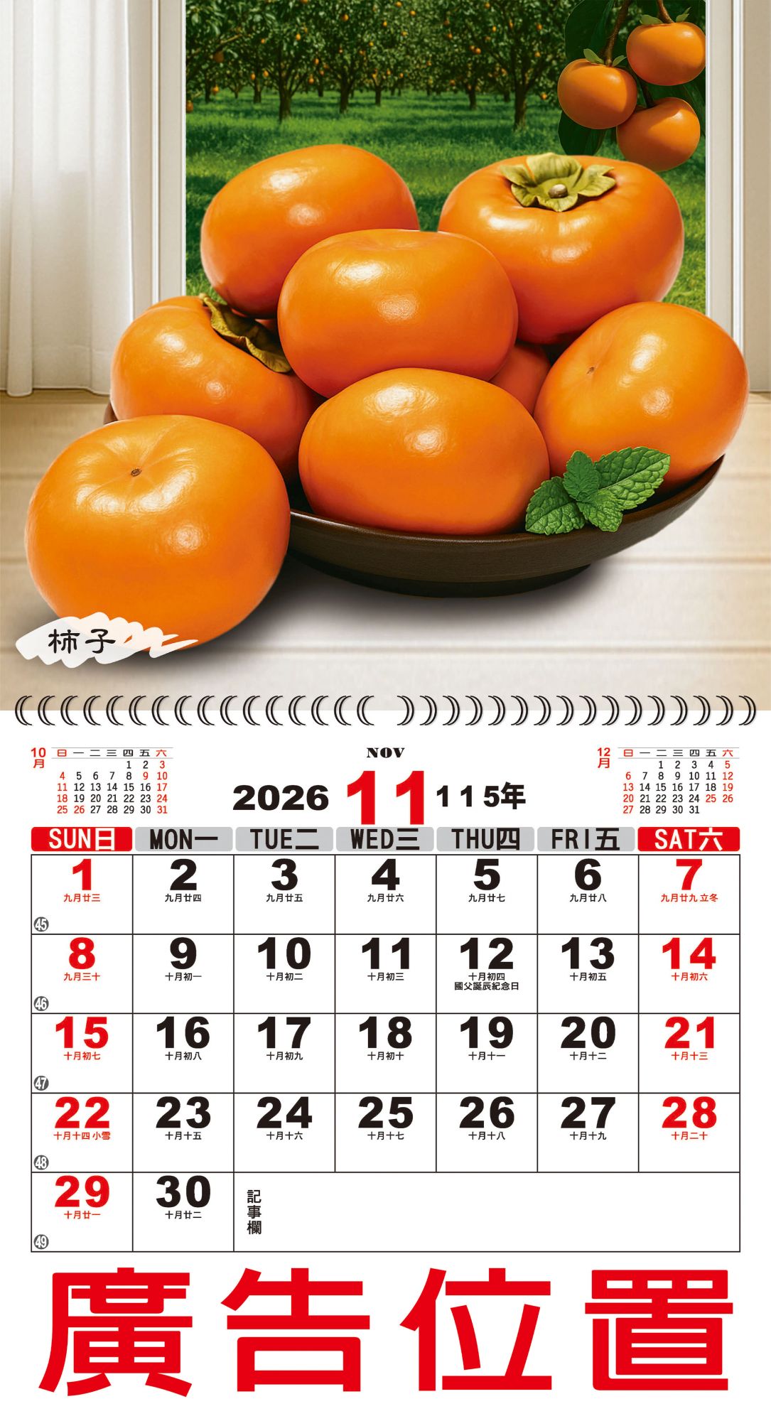 - 商品為傳統式日曆、月曆,產品內的圖片皆是現成公版圖片印刷,無法客製化加入圖片