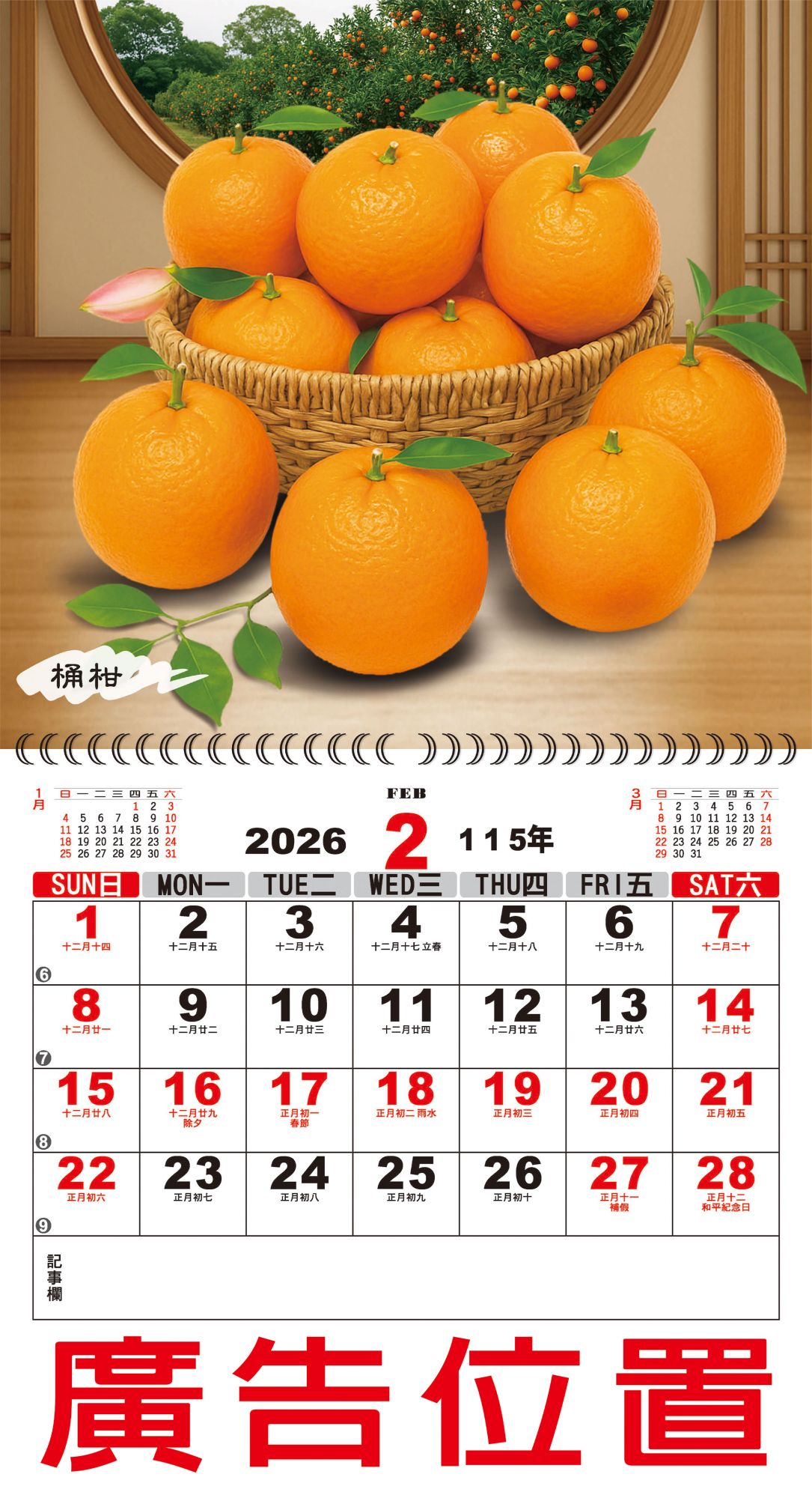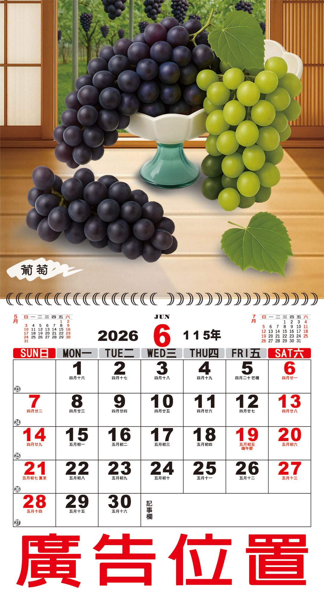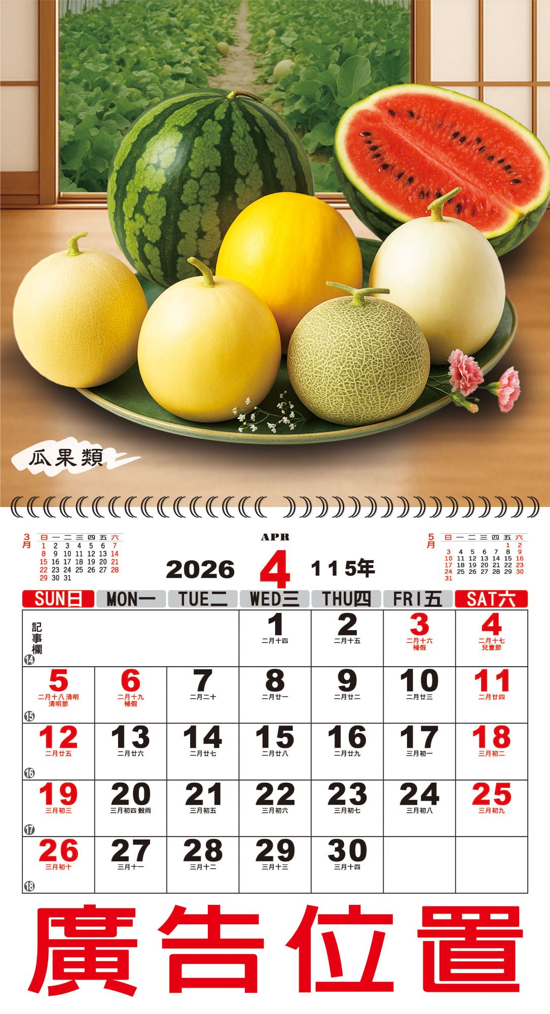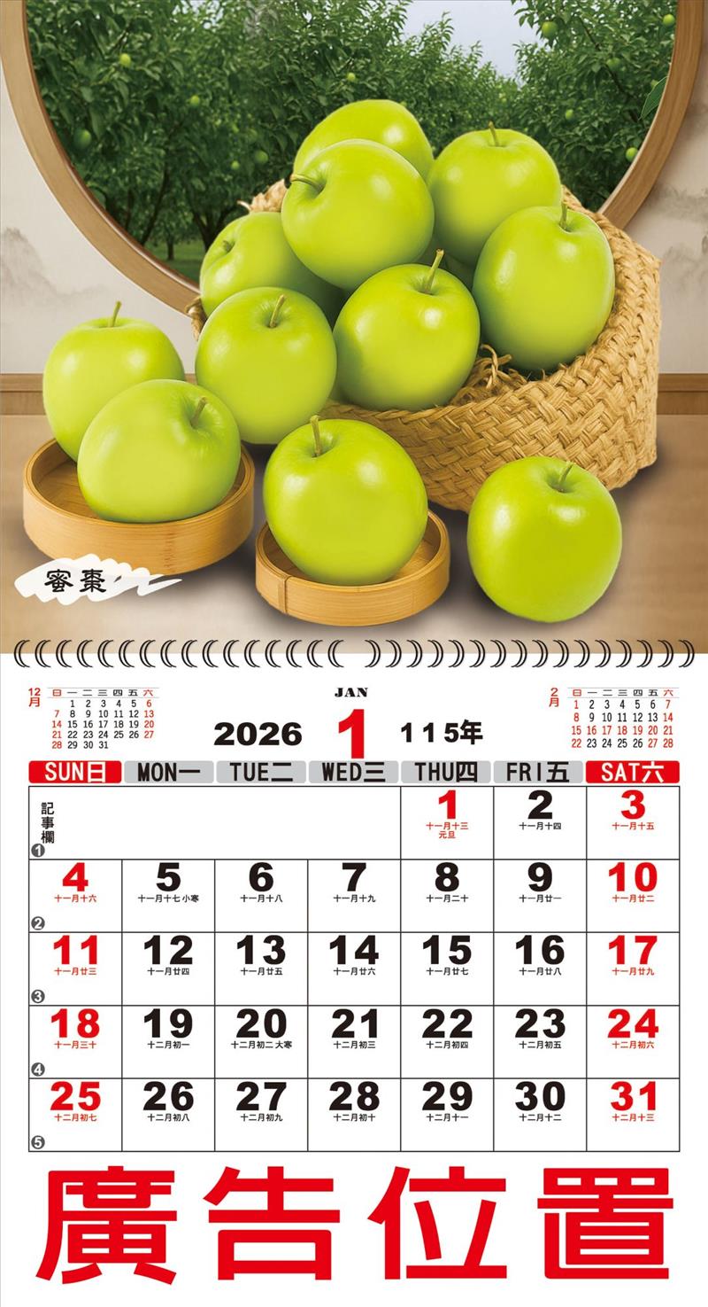 (H612)六開雙線圈膠條月曆(台灣水果)