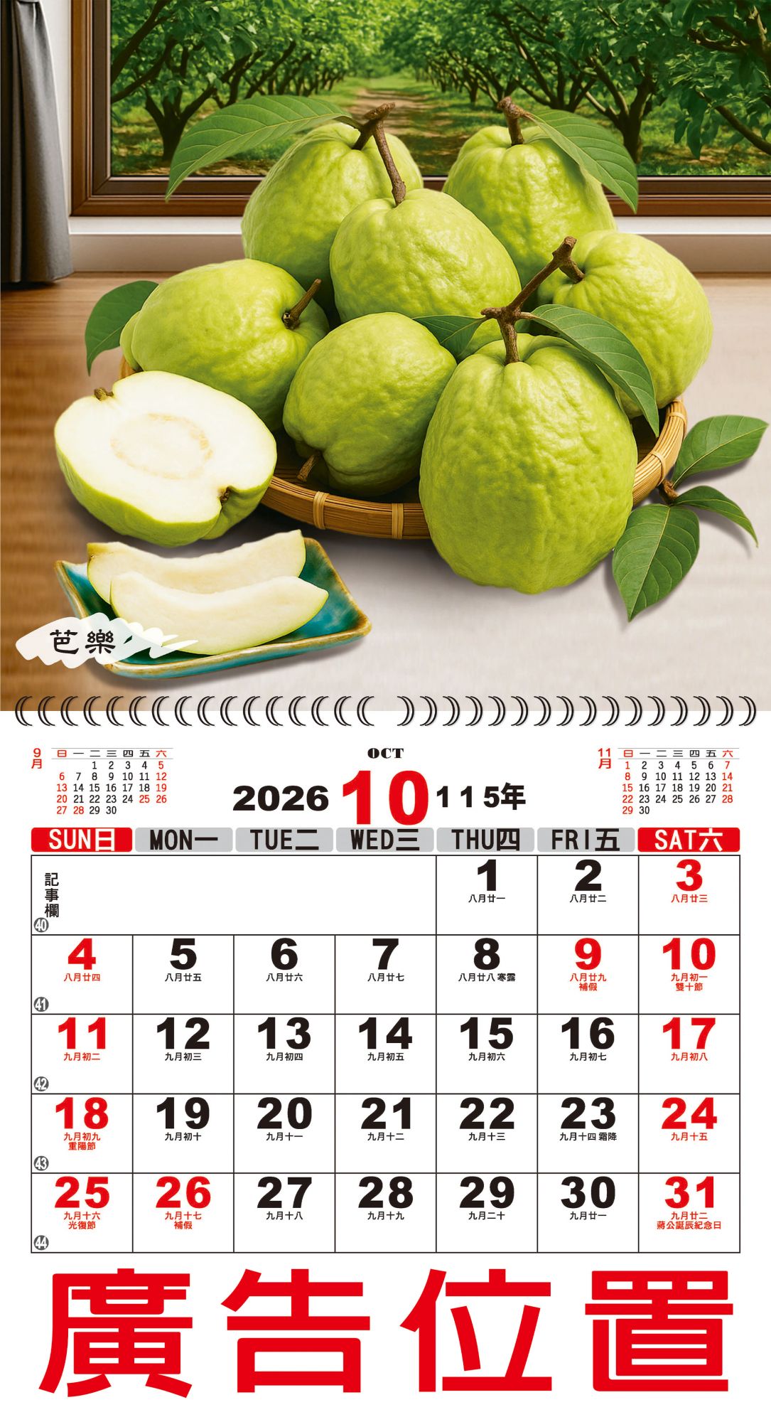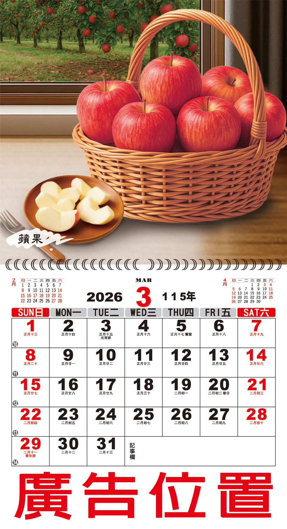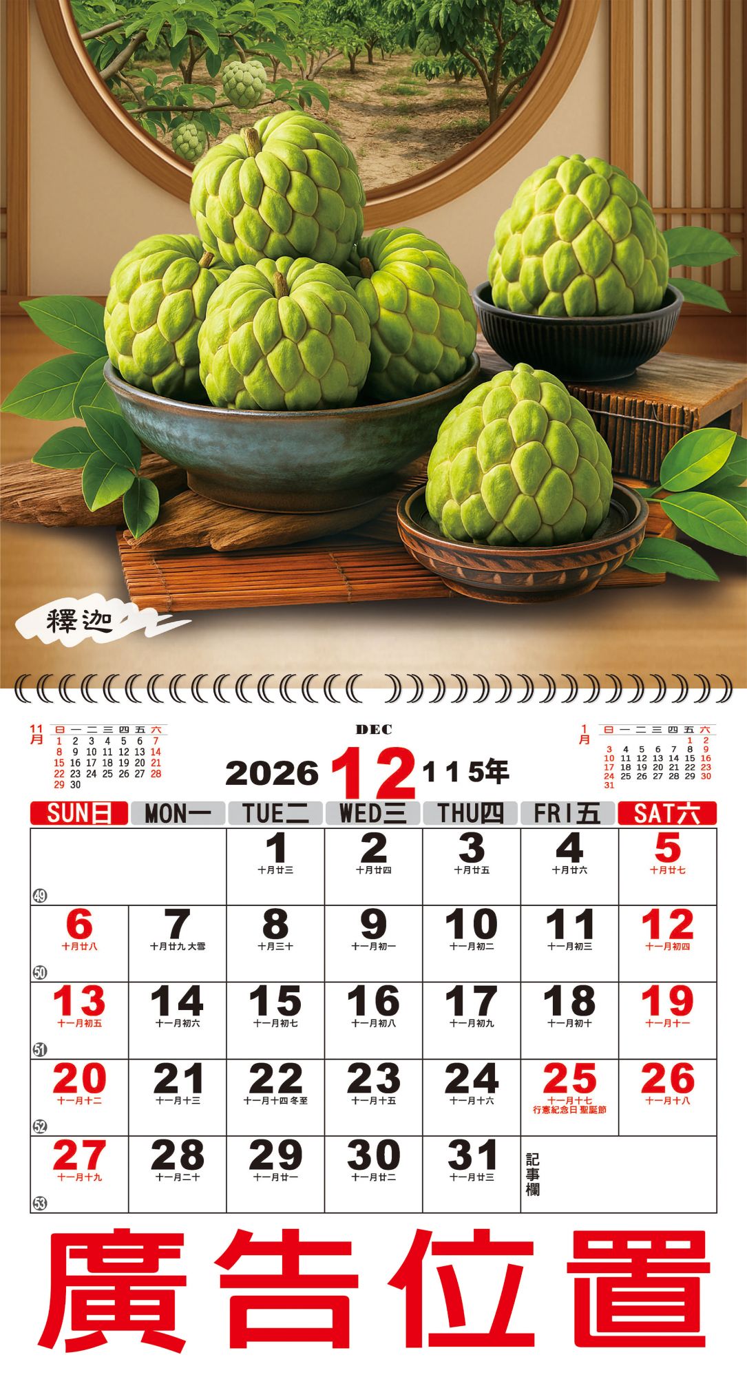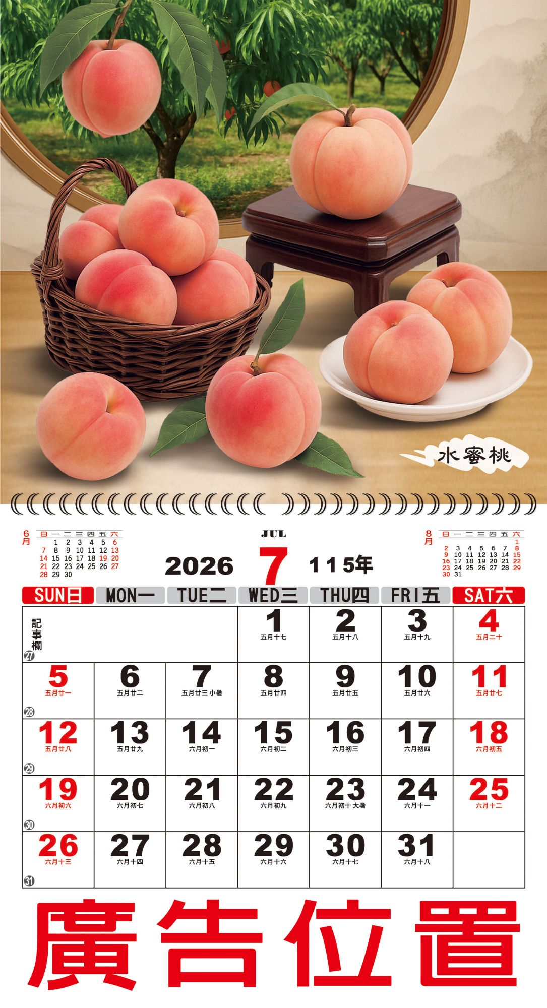 (H612)六開雙線圈膠條月曆(台灣水果)