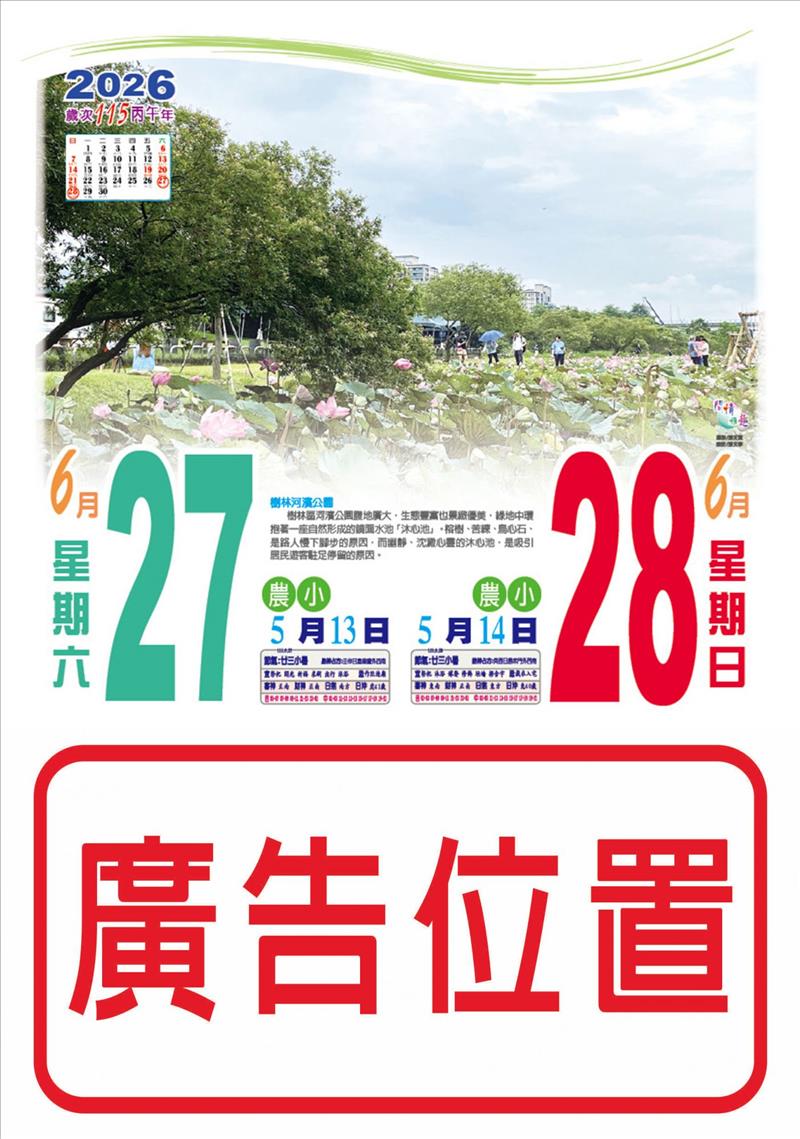 平日為藍色大數字,閱讀清晰、週末為彩圖,介紹各地美景小吃