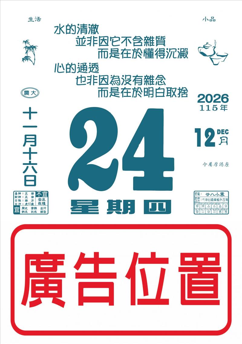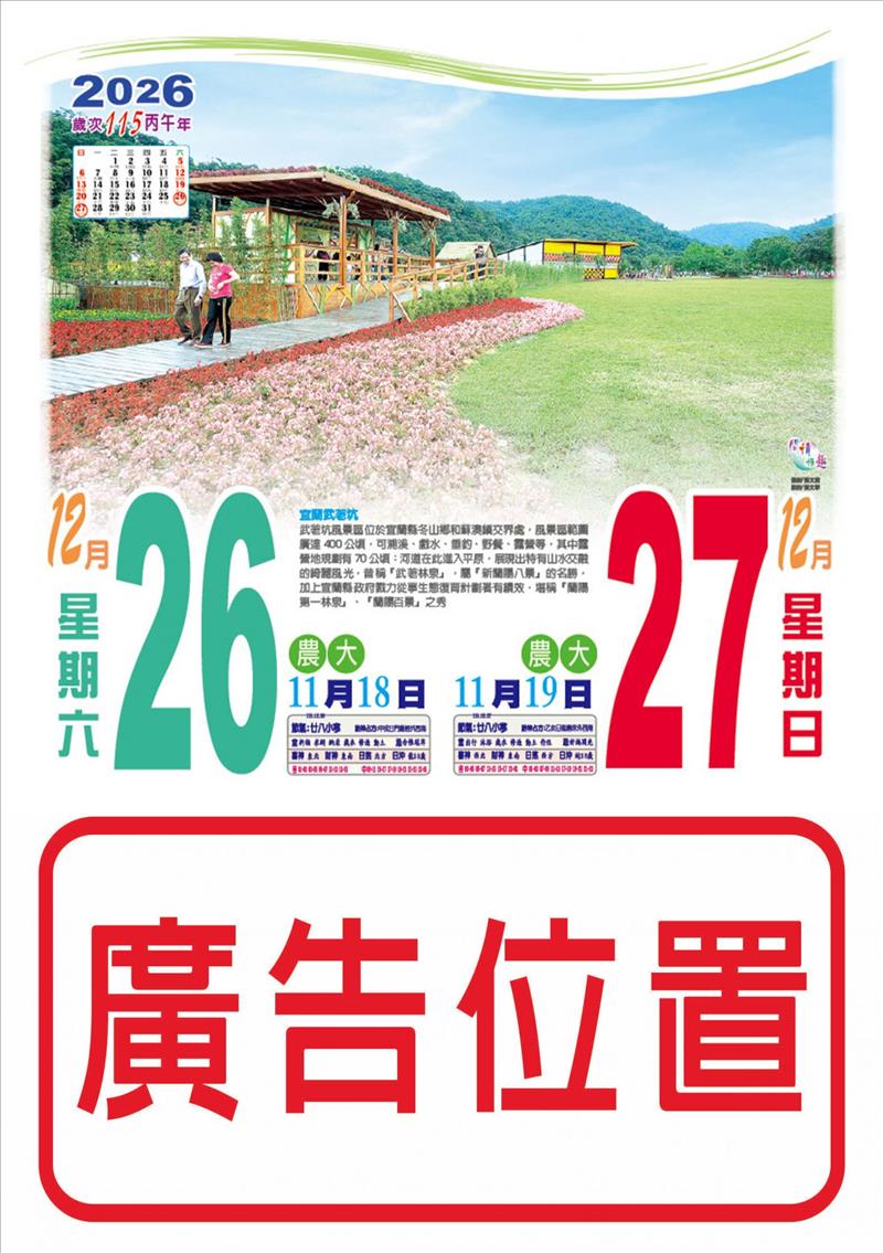 - 商品為傳統式日曆、月曆,產品內的圖片皆是現成公版圖片印刷,無法客製化加入圖片