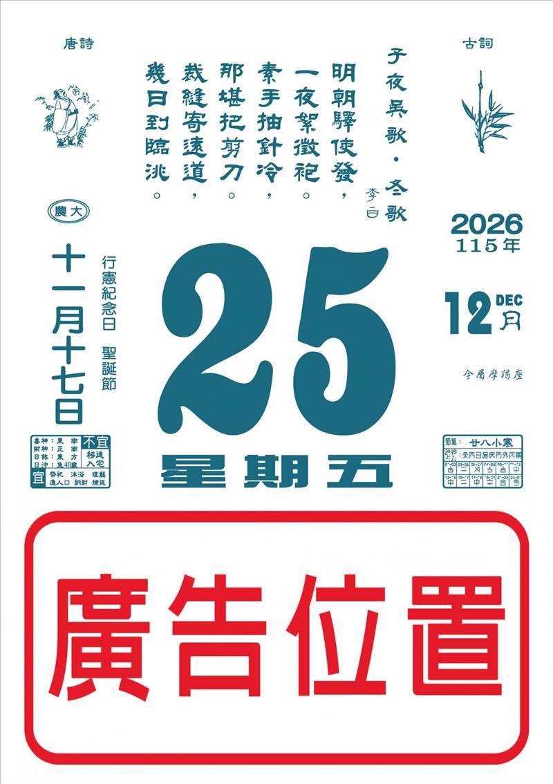 直式日曆(內頁加廣告)(A68)直6開詩生情日曆