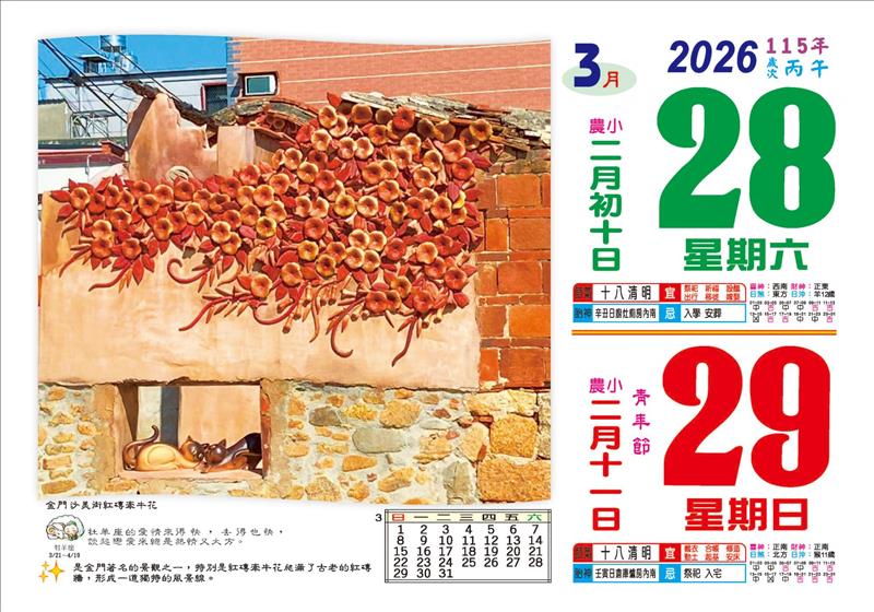 - 商品為傳統式日曆、月曆,產品內的圖片皆是現成公版圖片印刷,無法客製化加入圖片