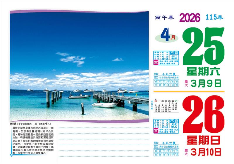 - 商品為傳統式日曆、月曆,產品內的圖片皆是現成公版圖片印刷,無法客製化加入圖片