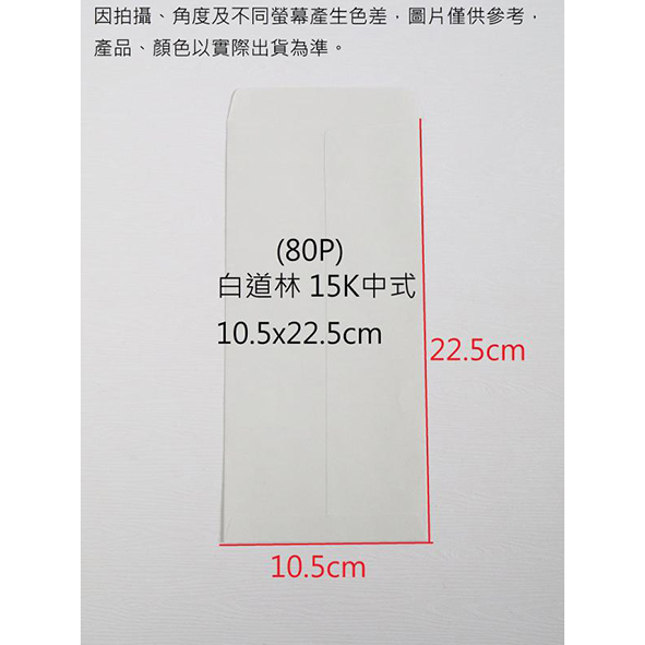 中式信封 80g 白模造 15K(105x225mm)(現成品不印刷)