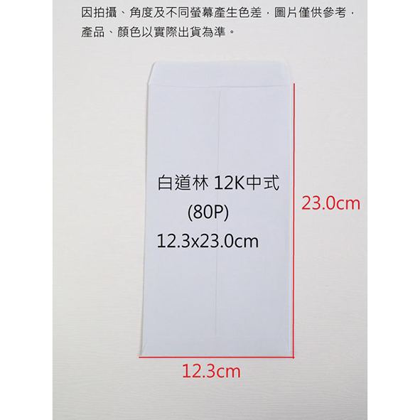 中式信封 80g 白模造 12K(123x230mm)(現成品不印刷)