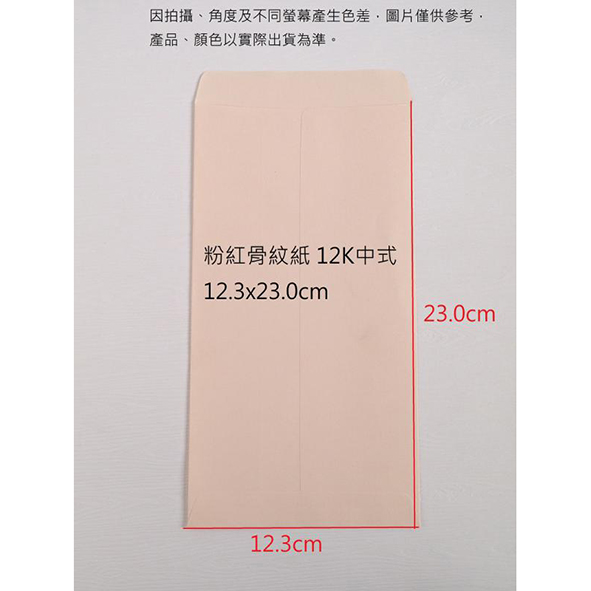 中式信封 80g 粉紅骨紋 12K(123x230mm){一律給向量檔[印刷色紅或黑請標示]}