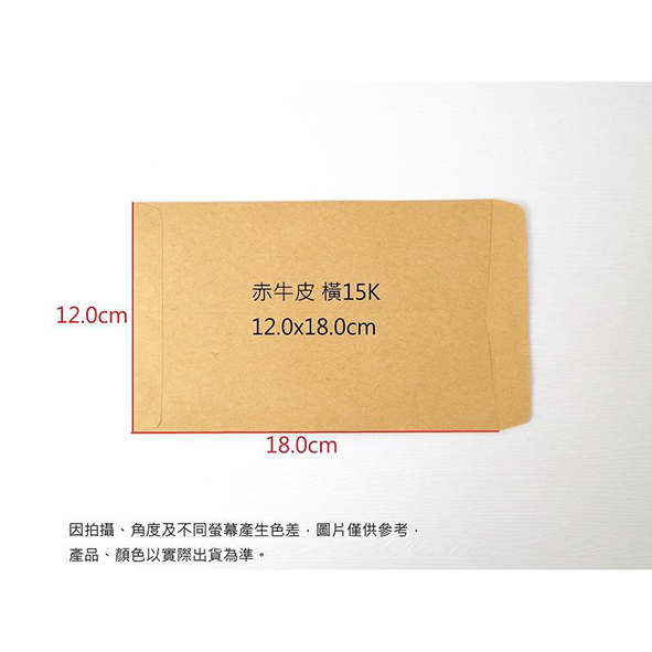中式信封 85g 赤牛皮 橫式15K(120x180mm){一律給向量檔[印刷色紅或黑請標示]}
